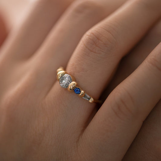 2.4Ct Blue Round Cut Solitaire With Accents Ring | Engagement Promise Ring For Fiancee | Stacking Ring For Her | Timeless Design