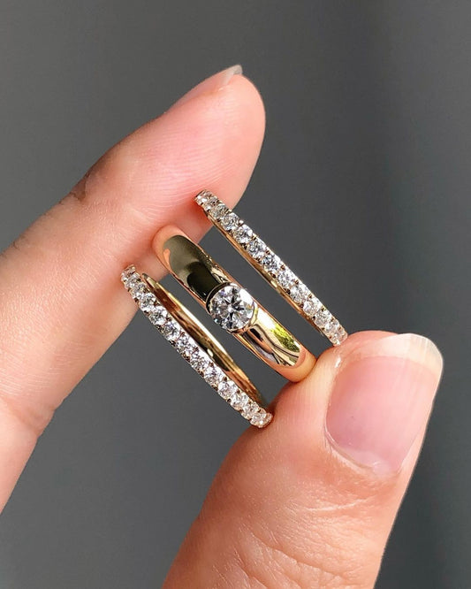 2.50Ct White Round Cut Half Bezel Ring Set | Anniversary Gift Ring Set For Wife | Timeless Design