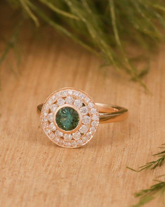 2.50Ct Green Blue Round Cut Moissanite Bezel Ring | Party Wear Ring For Women | Modern Bridal Ring | Beautiful Ring For Her