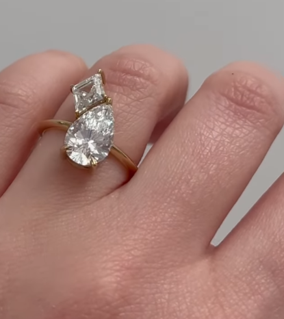 2.5Ct White Lozenge And Pear Cut Two Stone Ring | Birthday Gift Ring For Women | Toi Et Moi Ring | Elegant Ring