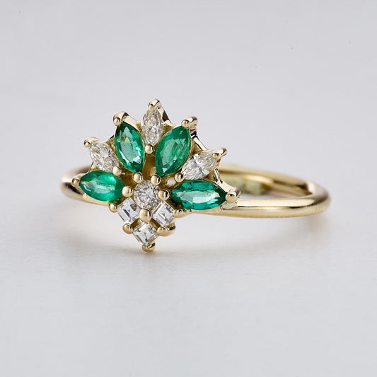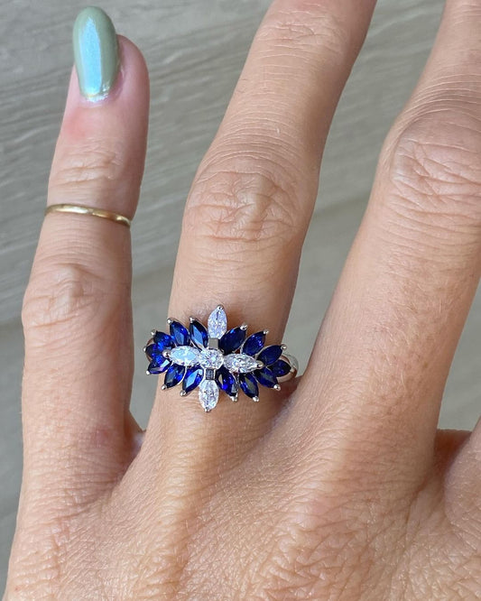 1.2CT White Round And Blue Marquise Cut Cluster Ring | Glamorous Ring | Awesome Ring | Timeless Design