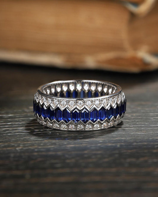 1.4Ct Blue Hexagon Cut Pave Band | Birthday Gift Band | Gift For Mother | Gemstone Band