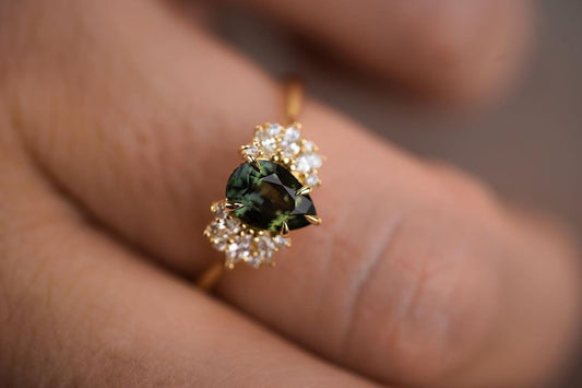 2.6Ct Green Pear Cut Three Stone Ring | Wedding Ring | Bridal Jewelry | Fancy Ring