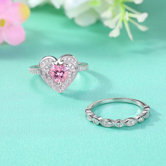 2.6Ct Pink Heart Cut Solitaire Ring Set | Proposal Ring Set | Lovely Ring Set | Bridal Ring Set