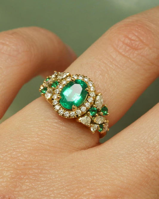 2.6CT Green Oval Cut Halo Ring | Anniversary Gift Ring For Her | Unique Ring | Gift For Sister