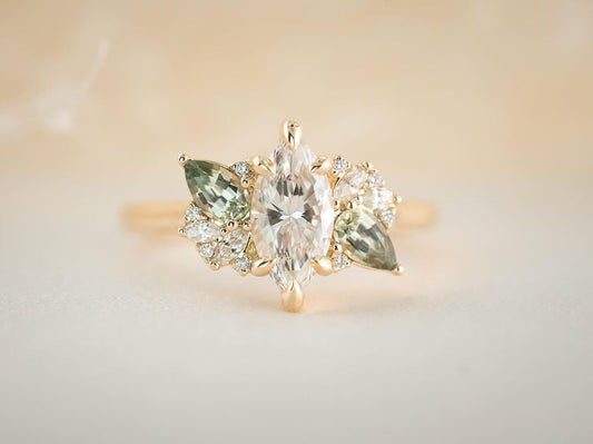 2.6Ct White Marquise Cut Cluster Ring | Anniversary Gift Ring For Wife | Designer Ring | Thank You Gift Ring