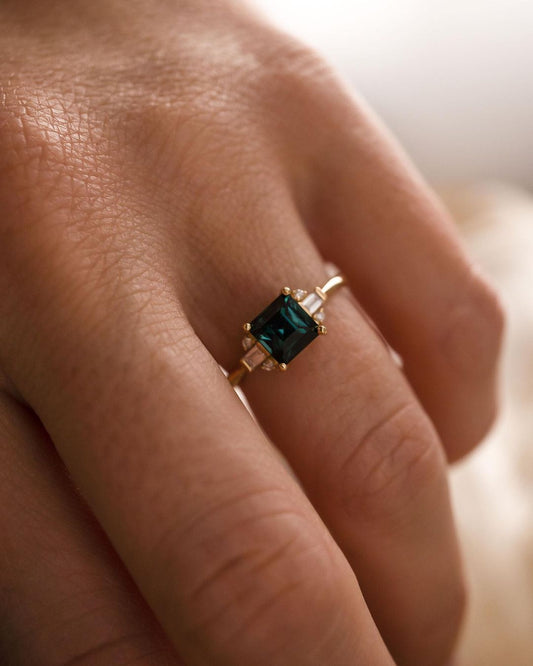 2.70Ct Green Blue Asscher Cut Moissanite Solitaire Ring | Party Wear Ring For Her | Fashionable Ring | Statement Ring