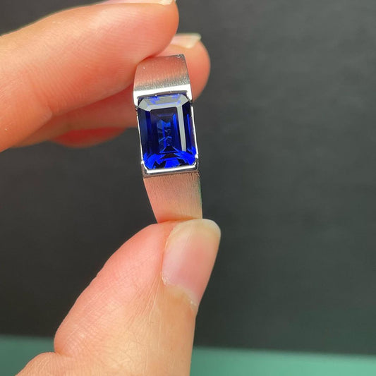2.70Ct Blue Emerald Cut Half Bezel Men's Ring | Daily Wear Men's Ring | Engagement Ring For Men