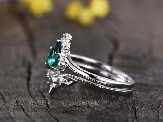 2.70Ct Green Pear Cut Solitaire Ring Set | Engagement Ring Set For Fiancée | Women Jewelry