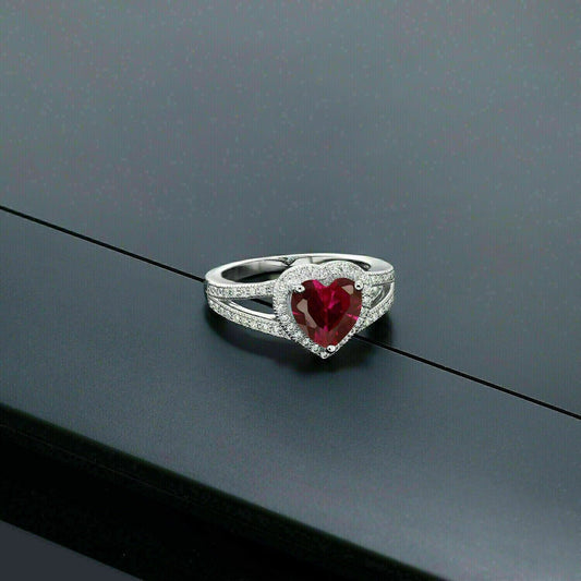 2.70Ct Red Heart Cut Halo Ring | Split Shank Ring | Proposal Ring | Women Jewelry