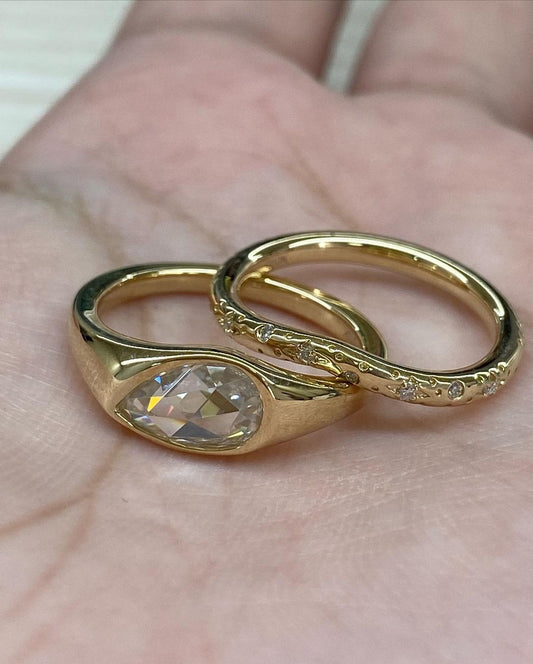 2.70Ct White Pear Cut Bezel Ring Set | Birthday Gift Ring Set | Minimalist Ring Set