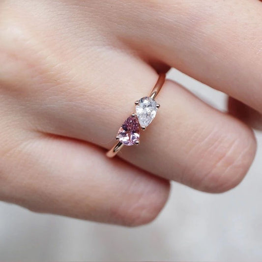 2.77Ct White And Pink Pear Cut Two Stone Ring | Toi Et Moi Ring | Perfect Gift For Girlfriend