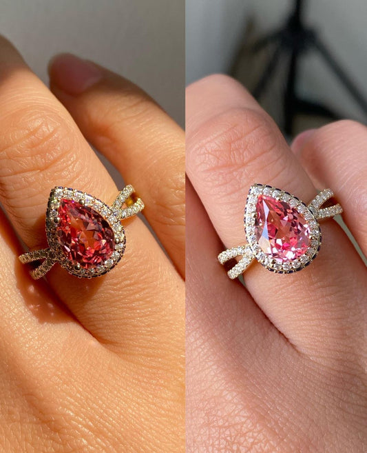 2.77Ct Pink Pear Cut Halo Ring | Designer Ring For Women | Modern Bridal Ring