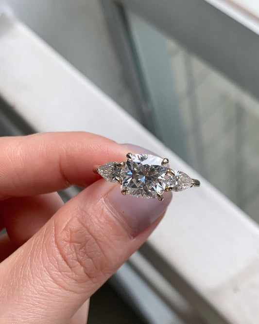 2.77Ct White Cushion Cut Three Stone Ring | Birthday Gift Ring For Mother | Dainty Ring