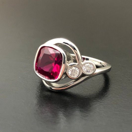 2.77Ct Red Cushion Cut Bezel Ring | Birthday Gift Ring | Surprise Gift Ring | Women Jewelry