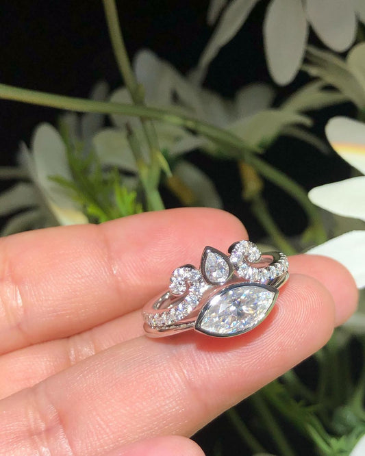 2.77Ct White Marquise Cut Bezel Ring Set | Anniversary Gift Ring Set | Timeless Design