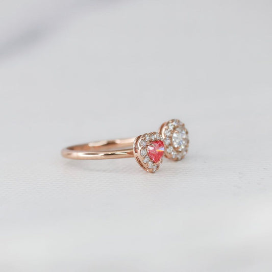 2.77Ct White Round And Pink Heart Cut Halo With Two Stone Ring | Toi Et Moi Ring | Proposal Ring