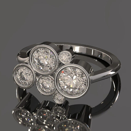 2.77Ct White Round Cut Bezel With Cluster Ring | Party Wear Ring | Bridal Jewelry