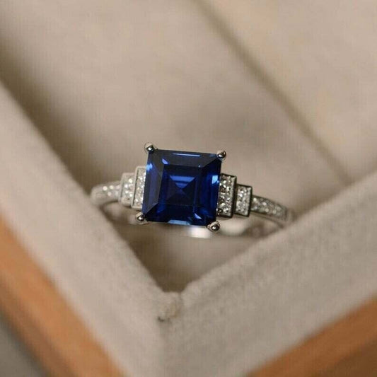 2.80Ct Blue Asscher Cut Solitaire Ring | Birthday Gift Ring | Hand Mad Ring For Women