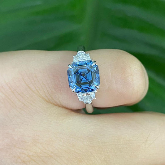 2.80Ct Blue Asscher Cut Solitaire Ring | Anniversary Gift Ring | Customize Ring For Women | Jewelry Collection