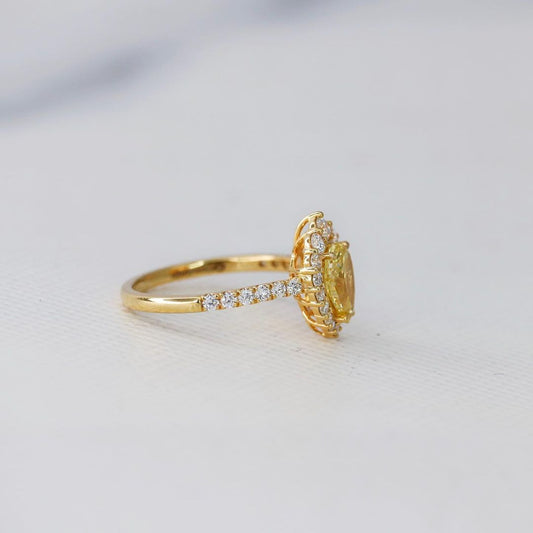 2.80Ct Canary Yellow Pear Cut Halo Ring | Wedding Ring For Bridal | Designer Ring For Women