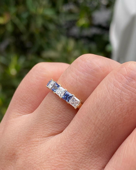 2.80Ct Blue And White Princess Cut Half Eternity Band Ring | Anniversary Gift Band Ring For Wife | Fashion Jewelry