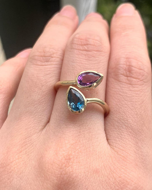 2.80Ct Blue And Purple Pear Cut Bezel With Two Stone Ring | Toi Et Moi Ring | Jewelry Collection