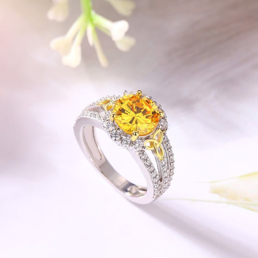 2.80Ct Golden Yellow Round Cut Halo Ring | Birthday Gift Ring For Mother| Designer Ring