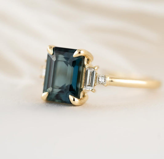 2.80Ct Green Blue Emerald Cut Moissanite Solitaire Ring | Engagement Ring For Her | Awesome Ring | Fancy Ring