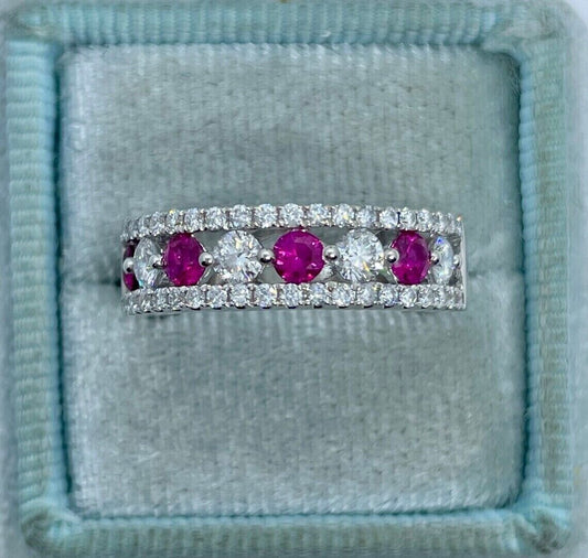 2.80Ct White And Red Round Cut Full Eternity Band Ring | Anniversary Gift Band Ring | Timeless Design