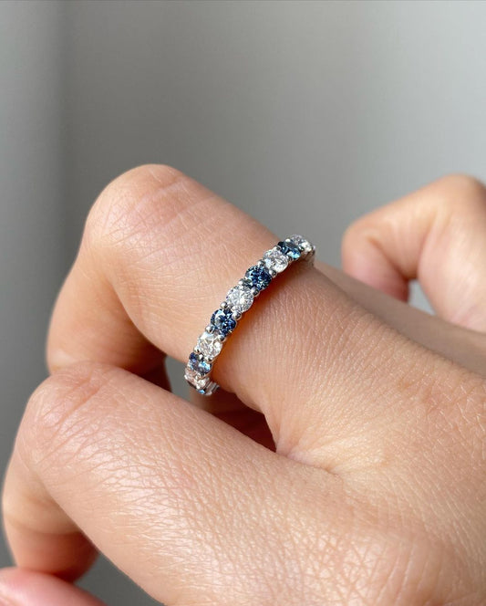 2.80Ct White And Blue Round Cut Full Eternity Band Ring | Proposal Band Ring | Daily Wear Band Ring