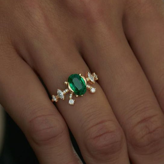 2.80Ct Green Oval Cut Bar Ring | Birthday Gift Ring | Women Jewelry | Trendy Ring