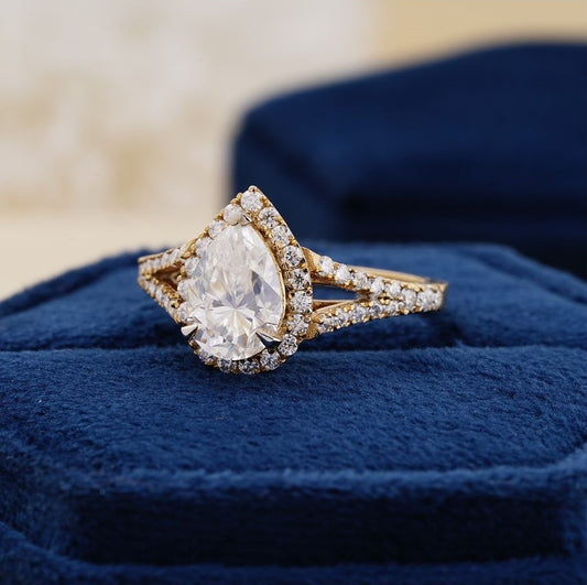 2.80Ct White Pear Cut Halo Ring | Split Shank Ring | Perfect Engagement Ring | Surprise Gift Ring For Fiancée