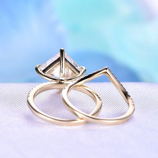 2.80Ct White Princess Cut Solitaire Ring Set | Wedding Ring Set For Bridal | Timeless Design