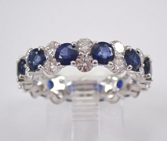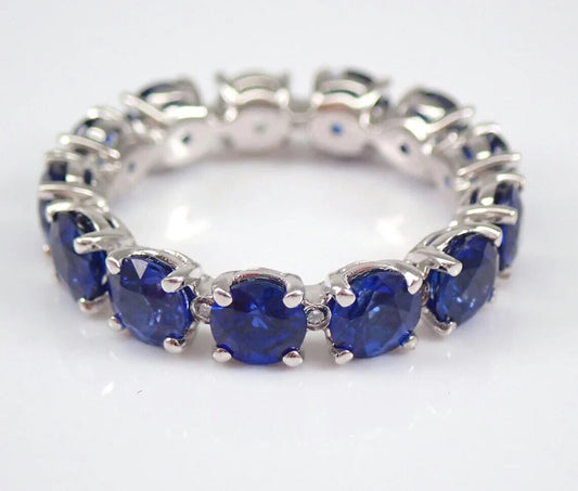 3.20Ct White And Blue Round Cut Full Eternity Band Ring | Anniversary Gift Ring For Women