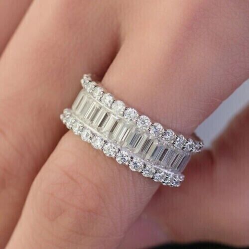 3.20Ct White Baguette Cut Full Eternity Band Ring | Anniversary Gift Ring | Fashion Jewelry
