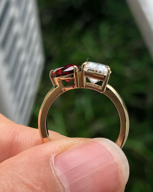 3.20Ct White Emerald And Red Pear Cut Two Stone Ring | Engagement Ring For Women | Toi Et Moi Ring