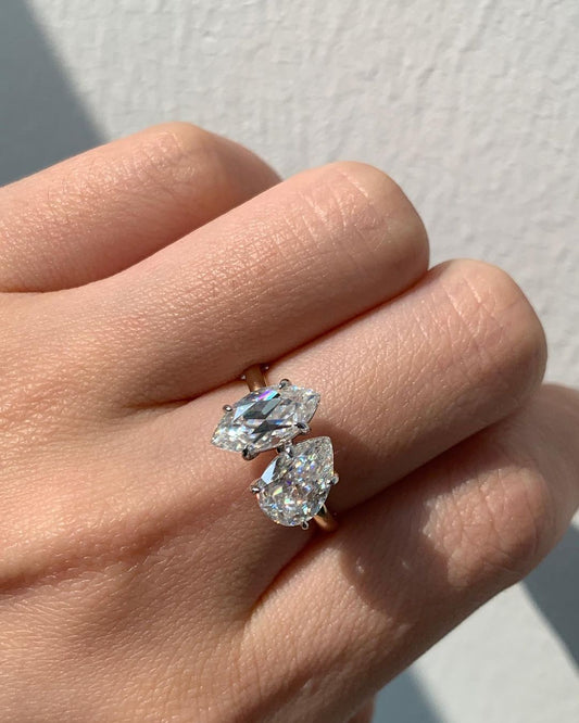 3.20Ct White Marquise And Pear Cut Two Stone Ring | Toi Et Moi Ring | Engagement Ring