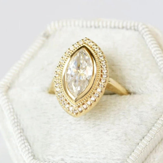 3.20Ct White Marquise Cut Bezel / Halo Ring | Party Wear Ring | Wedding Ring For Bridal
