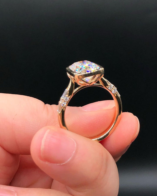 3.20Ct White Cushion Cut Bezel Ring | Forever One Ring | Valentine's Gift Ring For Her | Jewelry Collection