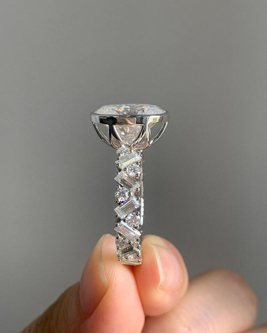 3.20Ct White Emerald Cut Half Bezel Ring | Luxury Jewelry | Anniversary Gift Ring For Women