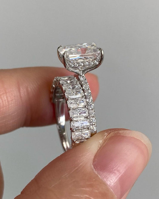 3.20Ct White Radiant Cut Solitaire Ring Set | Wedding Ring Set | Party Wear Ring Set | Timeless Design