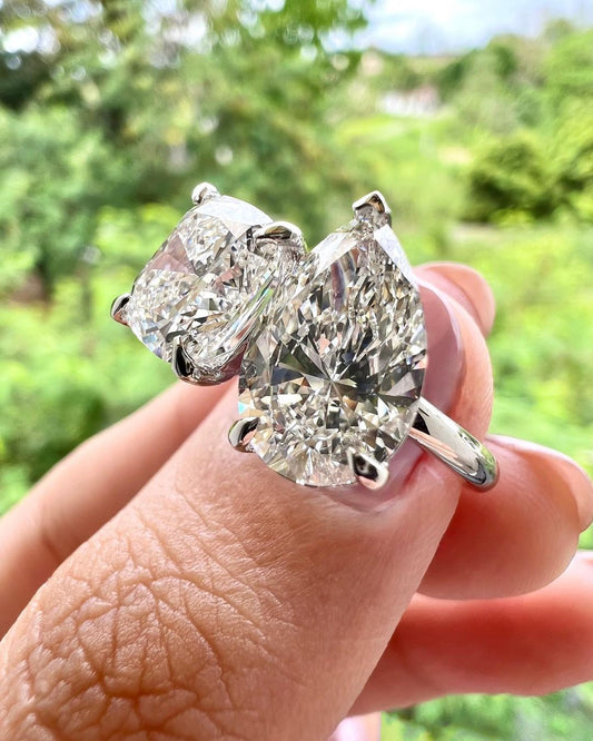 3.30Ct White Cushion And Pear Cut Two Stone Ring | Toi Et Moi Ring | Engagement Ring