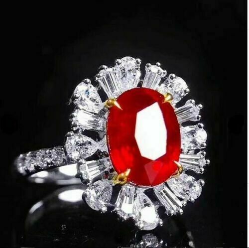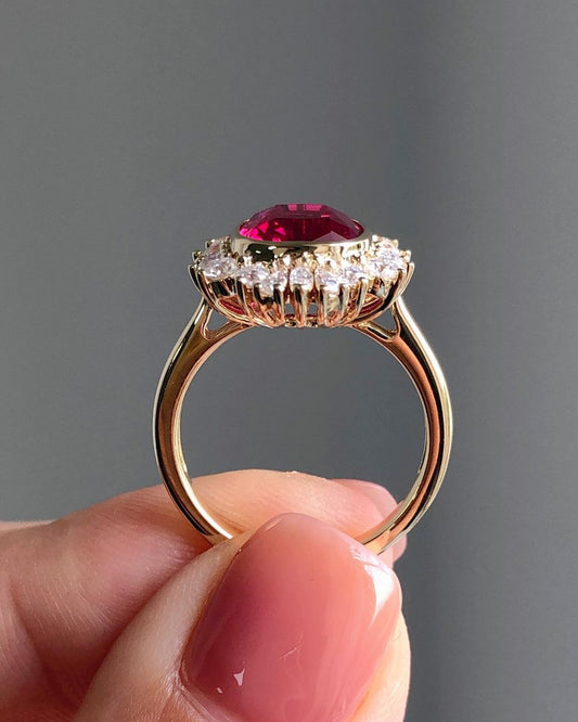 3.30Ct Red Oval Cut Halo Ring | Party Wear Ring For Women | Luxury Jewelry