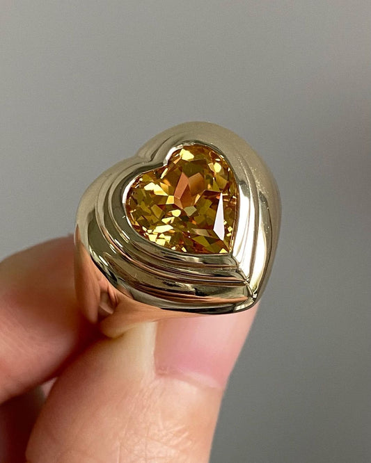 3.30Ct Golden Yellow Heart Cut Bezel Ring | Engagement Ring For Men | Statement Ring For Men | Lovable Ring For Men