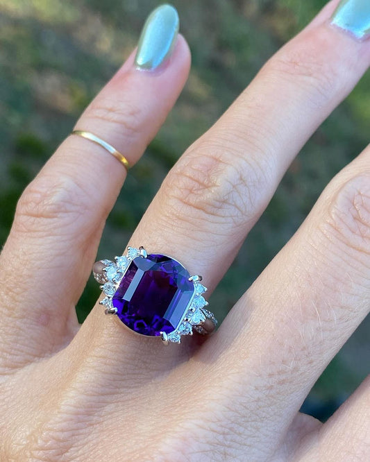 3.5CT Purple Cushion Cut Solitaire Ring | Fashionable Ring For Her | Designer Ring | Unique Ring
