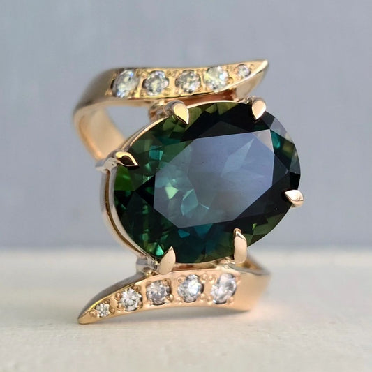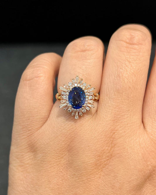 3.8Ct Blue Oval Cut Solitaire With Cluster Ring | Modern Bridal Ring | Stylish Ring For Women | Jewelry Collection
