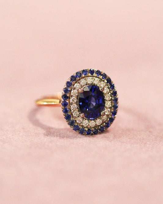 3.6CT Blue Oval Cut Double Halo Ring | Party Wear Ring For Women | Designer Ring | Customize Gift Ring