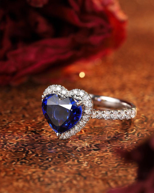 3.5CT Blue Heart Cut Halo Ring | Anniversary Gift Ring For Wife | Promise Ring | Bridesmaid Gifts