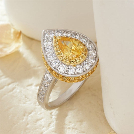 3.6CT Yellow Pear Cut Halo Ring | Special Occasion Ring | Jewelry Collection | Fancy Ring